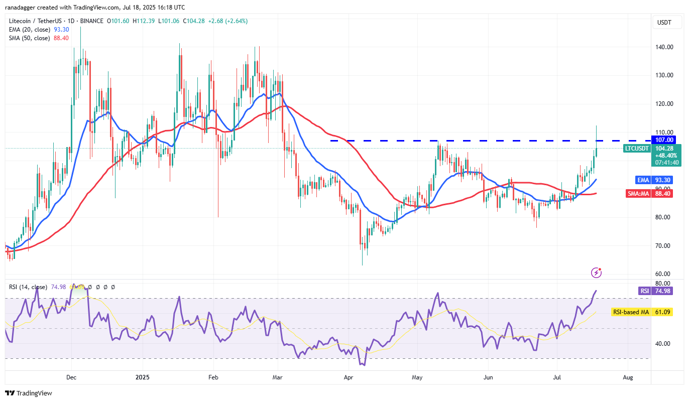 Sellers are likely to have other plans. They will try to retain the price below $107. If they manage to do that, the pair could slump to the 20-day EMA ($93). A deeper pullback could delay the resumption of the up move.