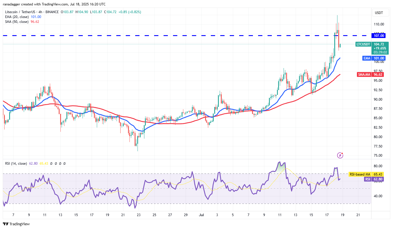Litecoin (LTC) broke above the $107 resistance on Friday, but the bulls could not sustain the higher levels as seen from the long wick on the candlestick.