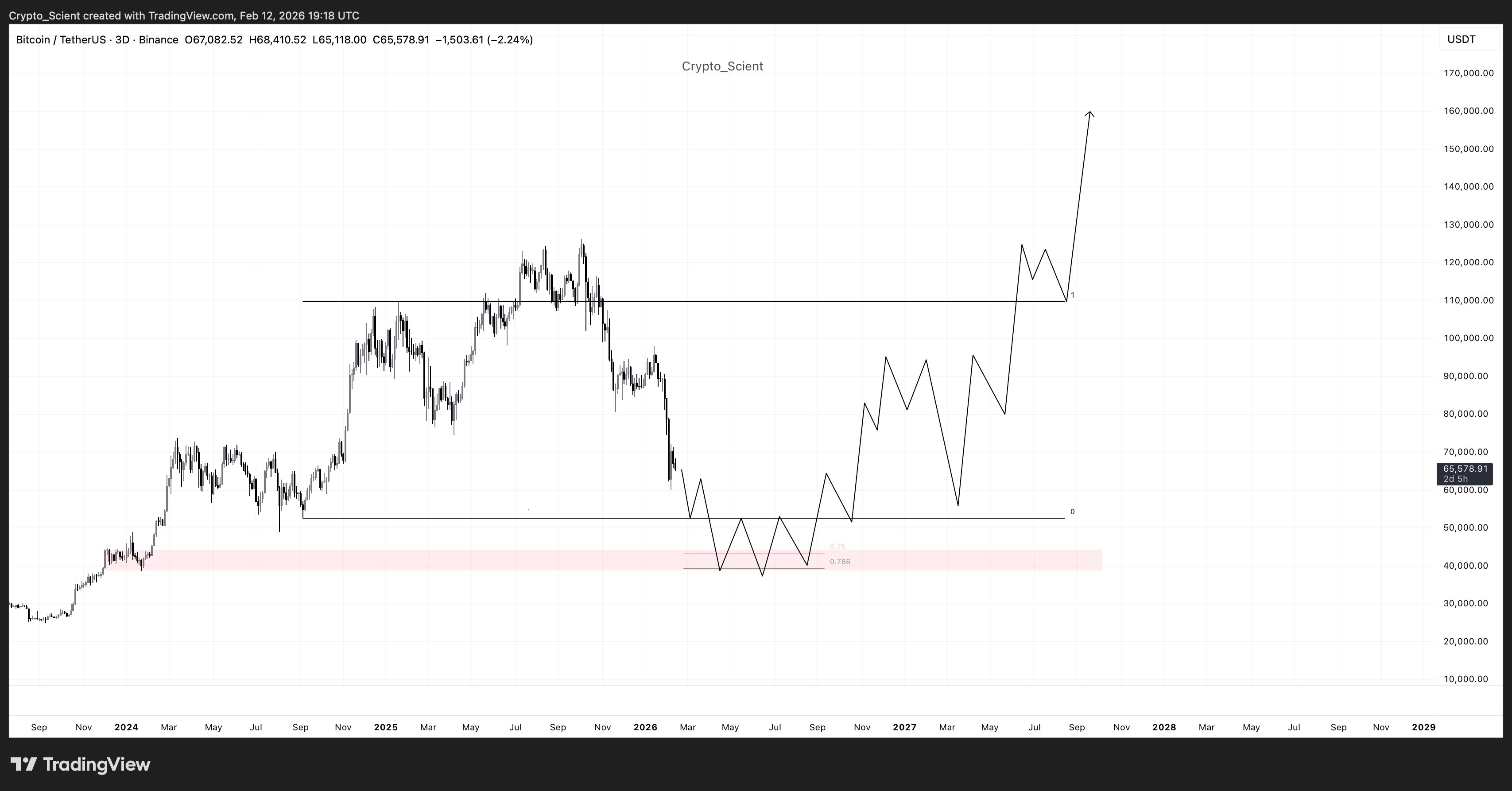 “I expect that region to be filled before a meaningful bottom forms,” Crypto Scient told X followers on Feb. 12.