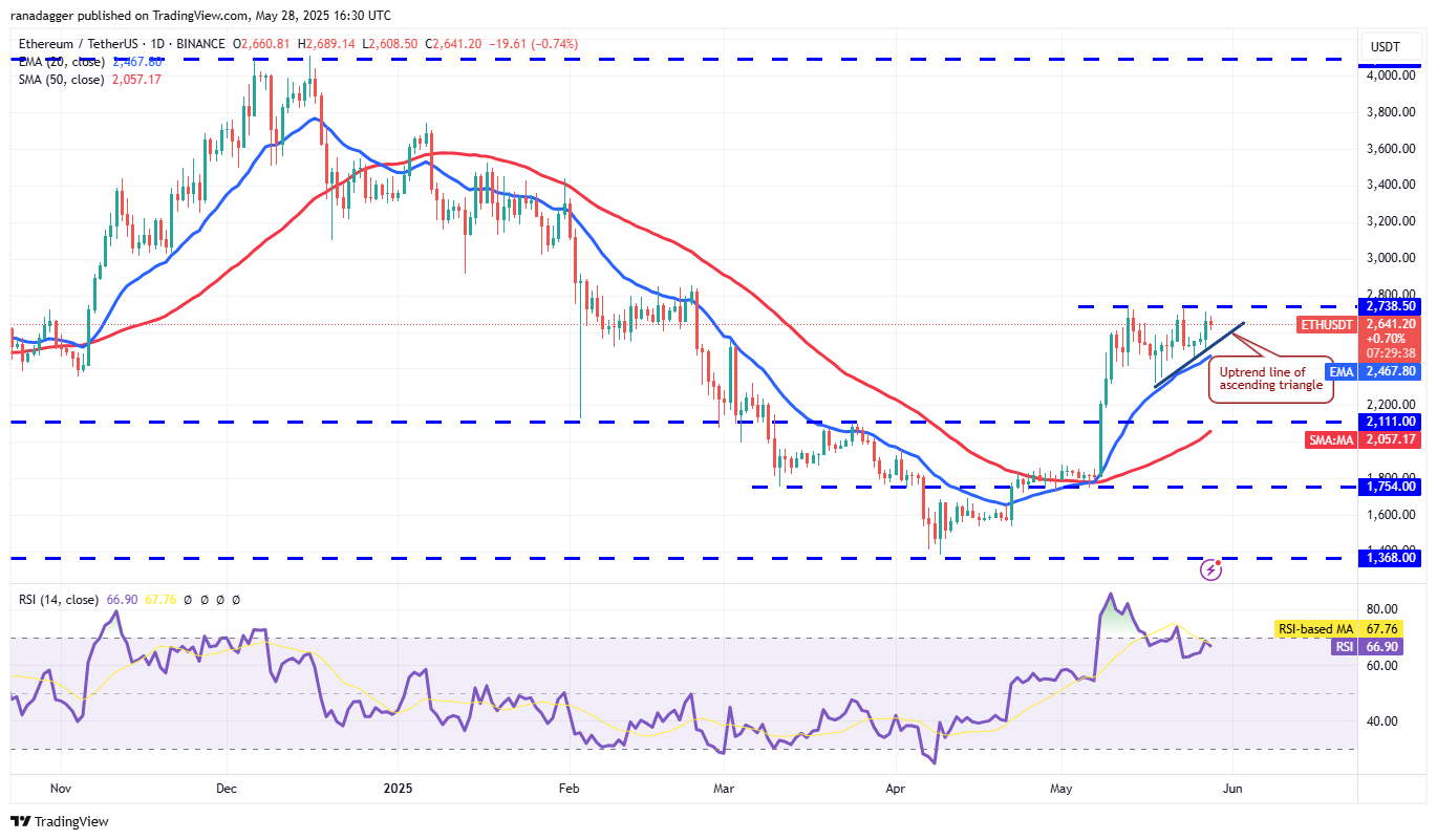 Buyers could not push Ether (ETH) above the $2,738 resistance on May 27, but they have kept up the pressure.