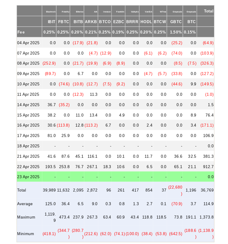 • Bitcoin ETF inflows obliterated the 2025 average on April 22.