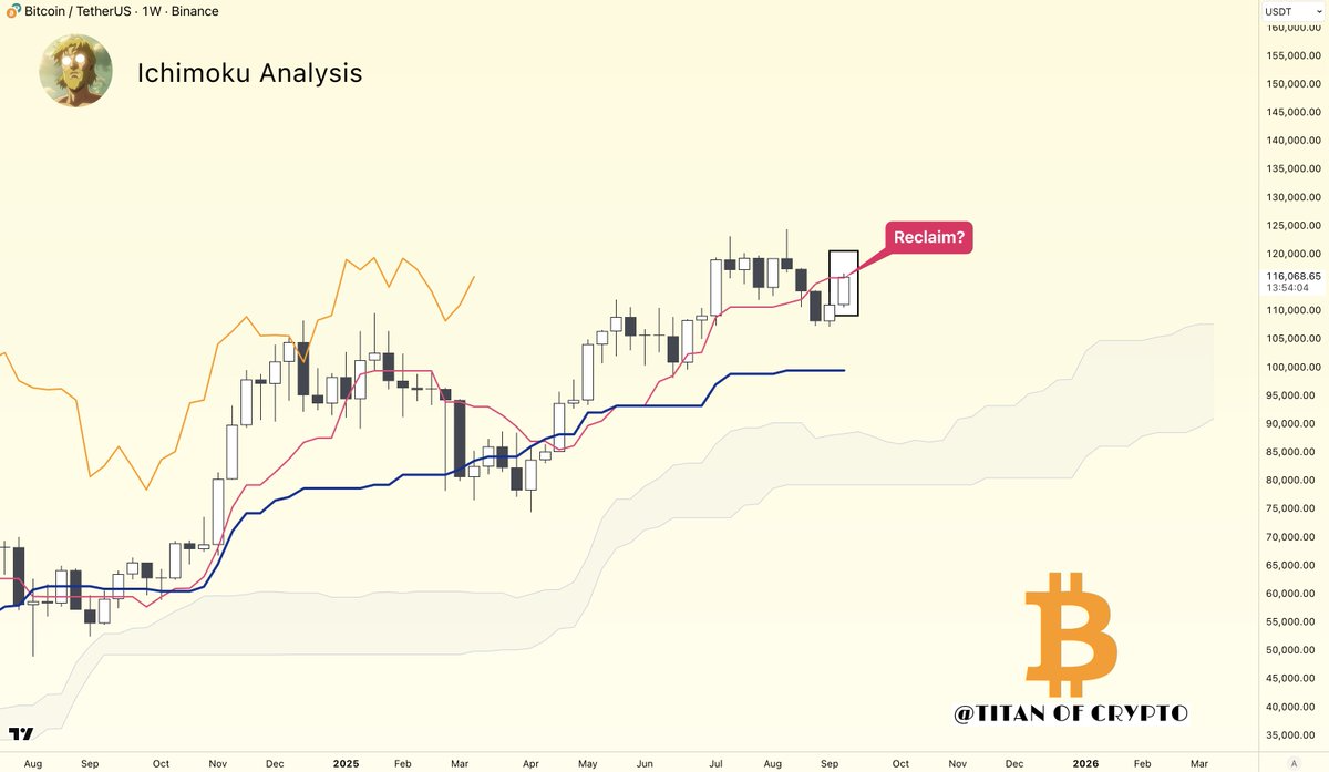 Trader Titan of Crypto noted that $115,000 was the key level to watch on the weekly time frame.
