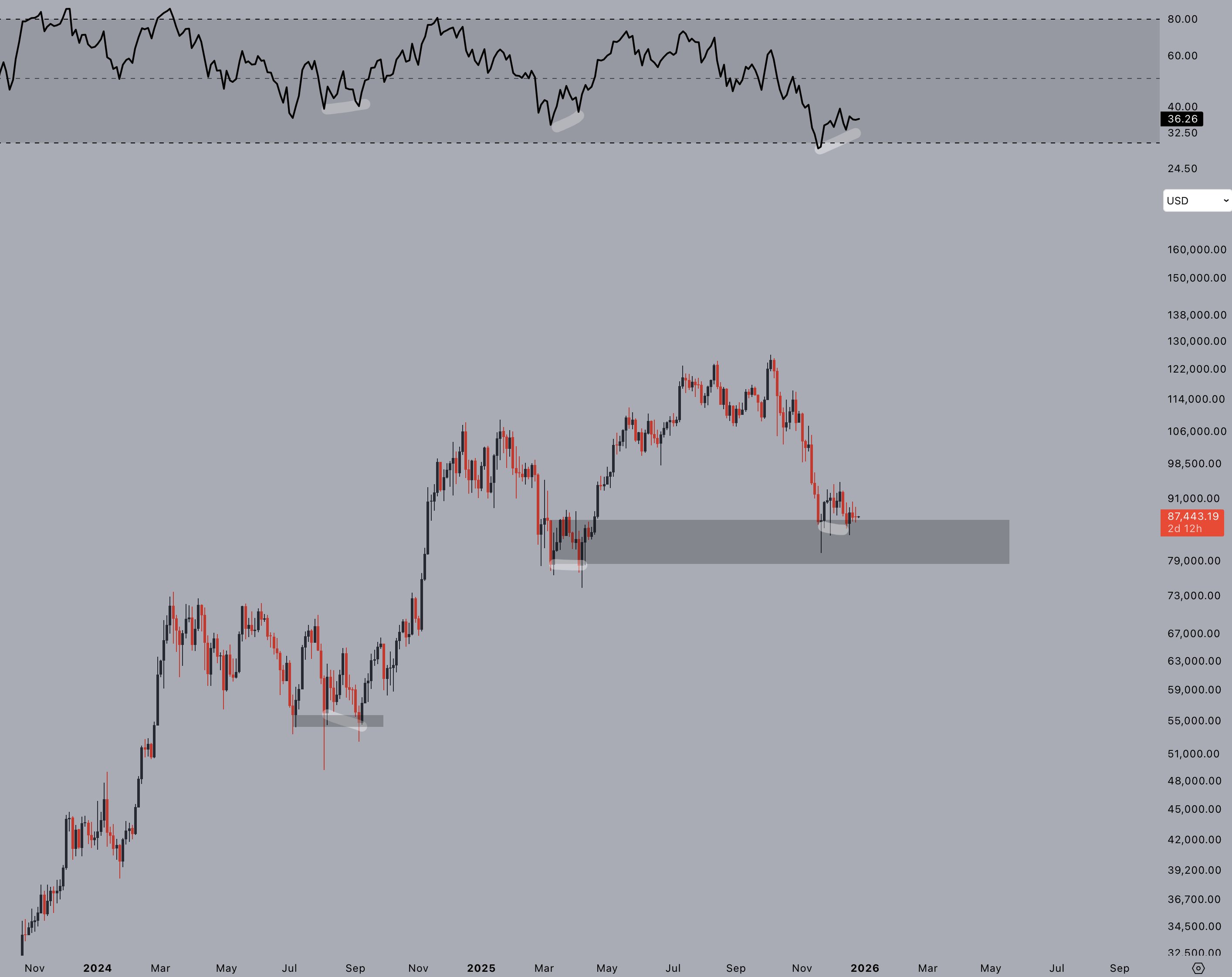 BTC/USD three-day chart with RSI data. Source: Jelle/X