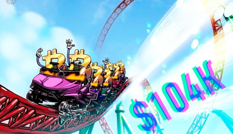 From a technical perspective, Bitcoin’s failure to sweep external liquidity near $109,000 has led to a gradual grind lower on the 4-hour chart. The current price action remains confined within a descending channel, with a key area of interest between $103,400 and $104,600.