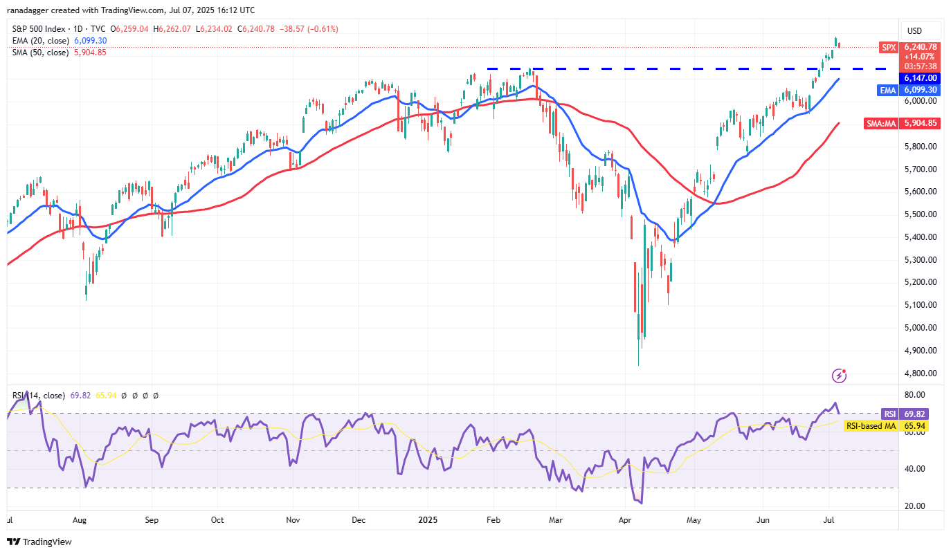 Sellers will have to yank the price below the 20-day exponential moving average (EMA)(6,099) to weaken the bullish momentum. The index may then plummet to the 50-day simple moving average (SMA) (5,904).