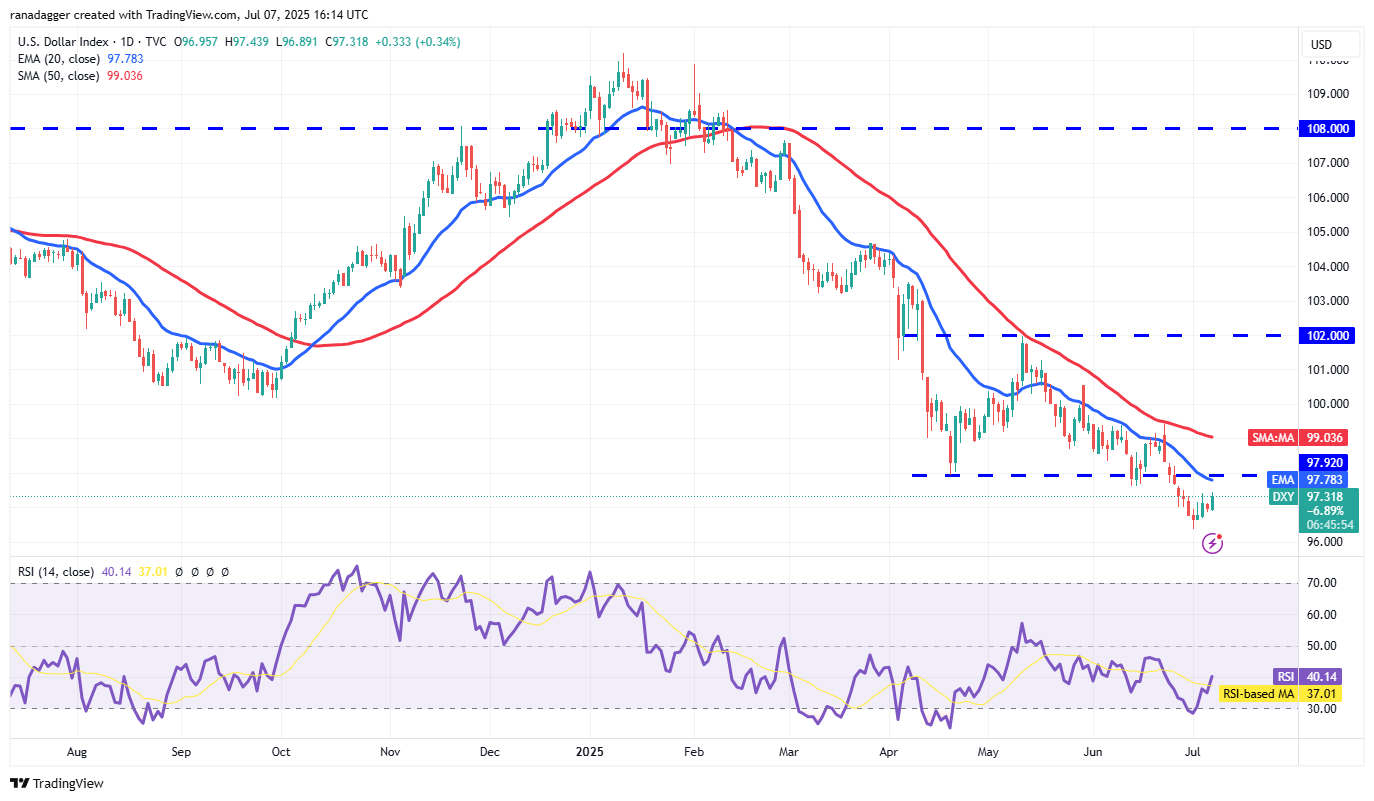Conversely, a break and close above the 97.92 level suggests the bulls are on a comeback. The index could then rise to the 50-day SMA (99.03). This is an important level to keep an eye on because a break above it could drive the index to the 100.54 level and then to the 102 resistance.