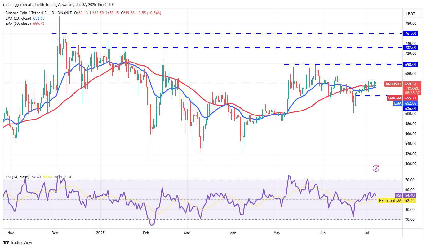 BNB (BNB) bounced off the 20-day EMA ($652) on Saturday, indicating that the sentiment remains positive and traders are buying on dips.
