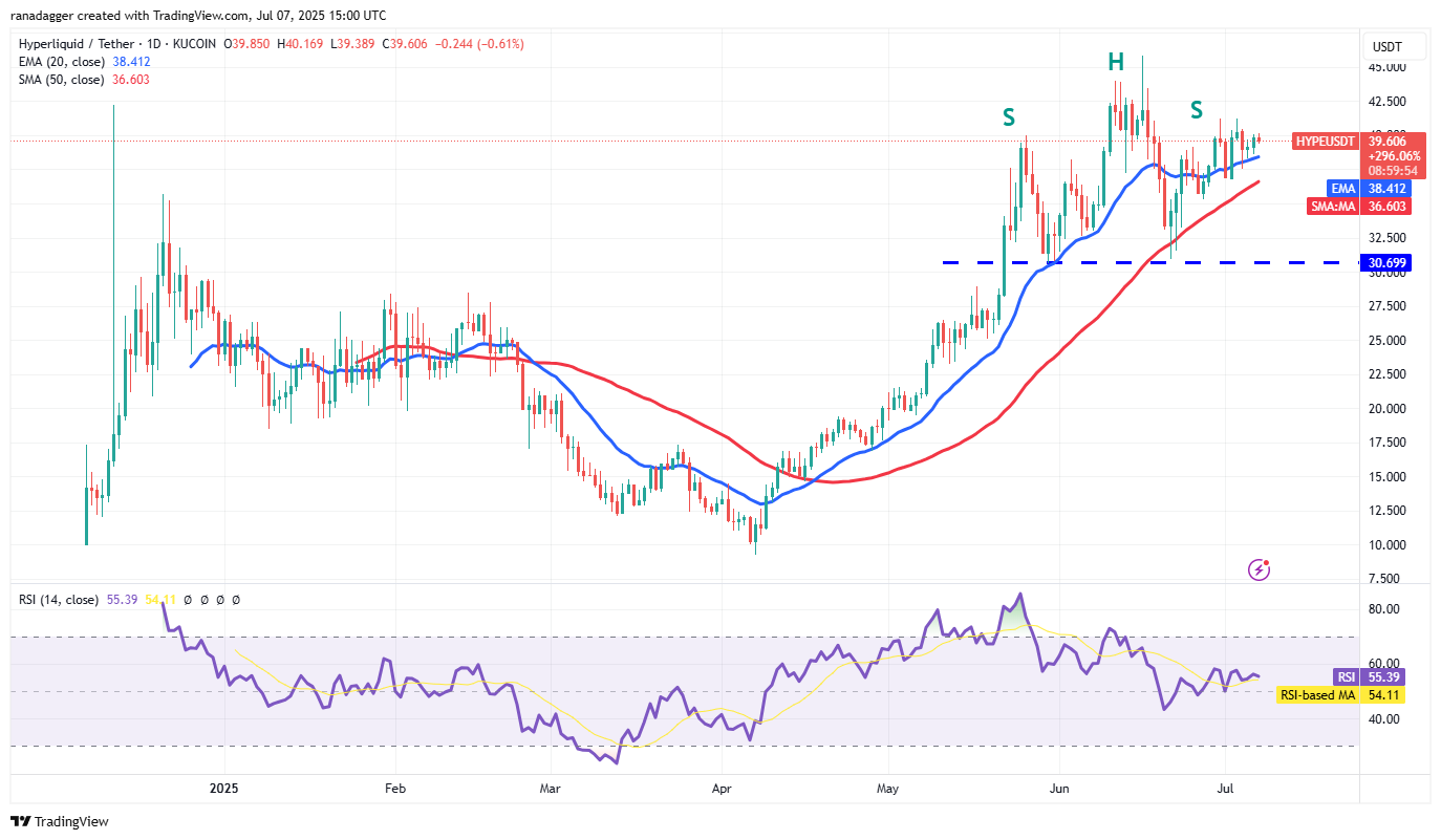 Buyers have managed to keep Hyperliquid (HYPE) above the 20-day EMA ($38.41) for the past few days, indicating demand at lower levels.