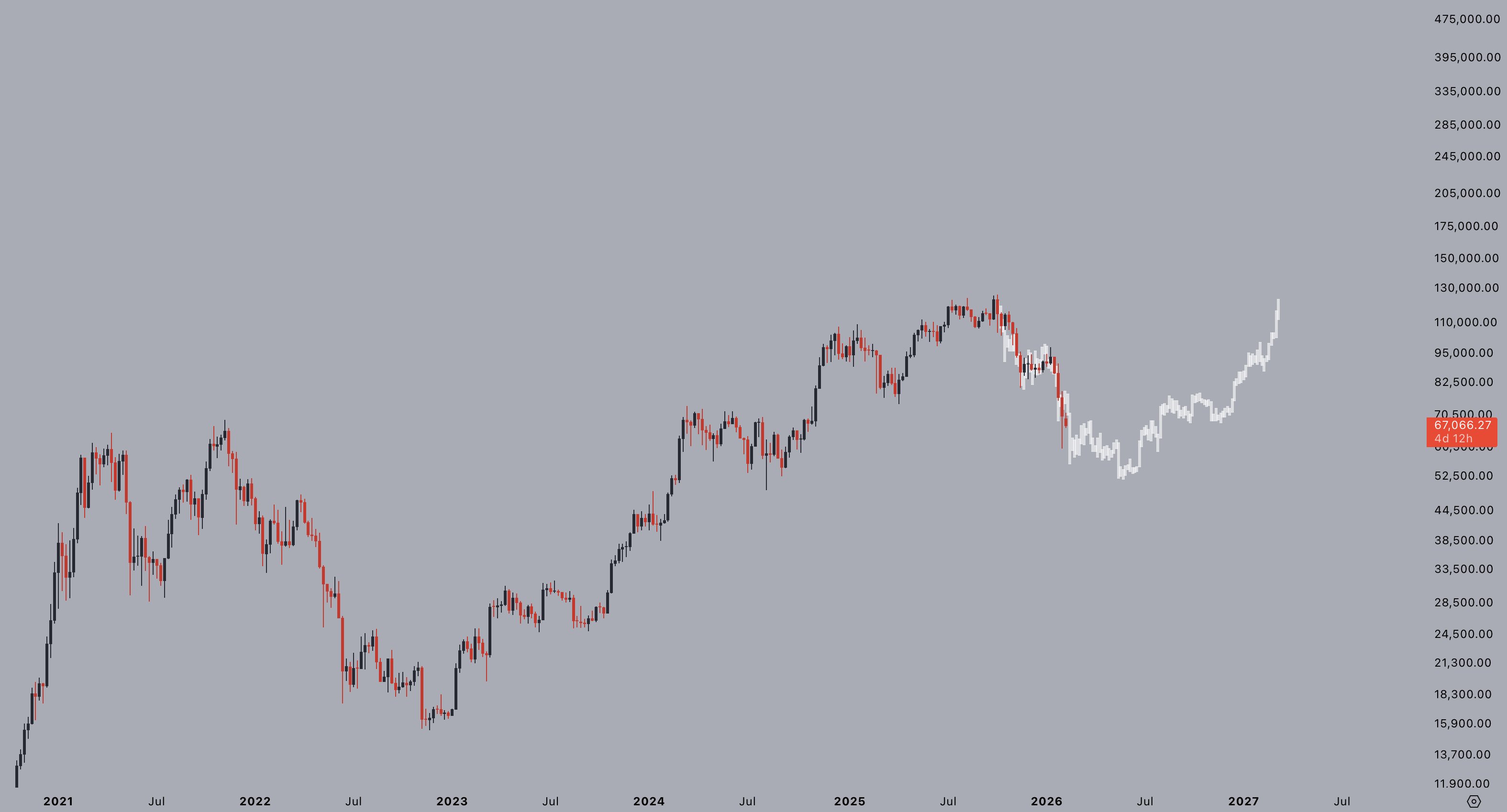 “Would see a relatively slow bleed towards the low $50ks from here – before bouncing back up; if it keeps playing out the same,” he told X followers.