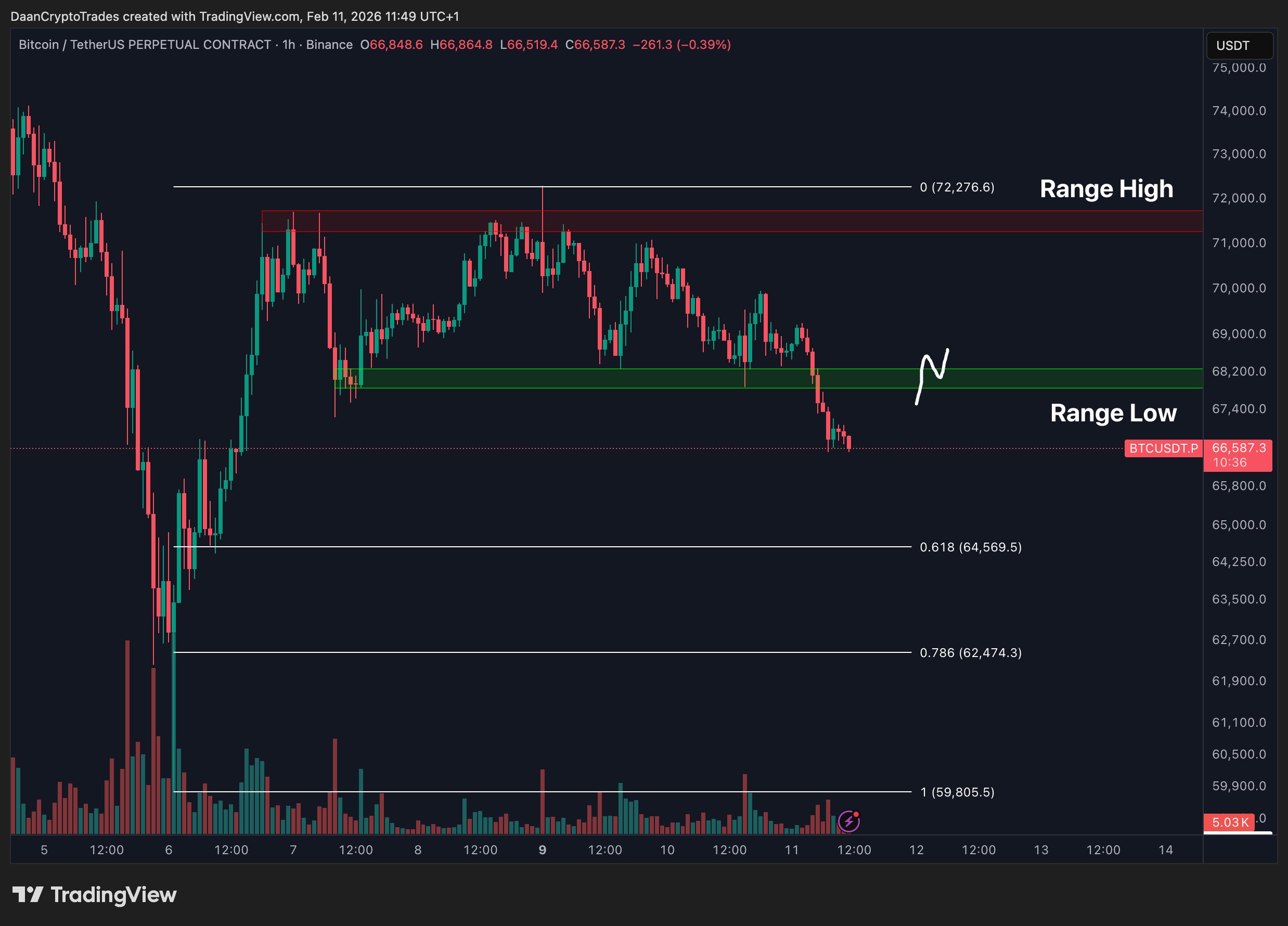 Daan Crypto Trades brought in Fibonacci retracement levels at $64,569, $62,474 and $59,805 while eyeing the potential for a deeper retracement.