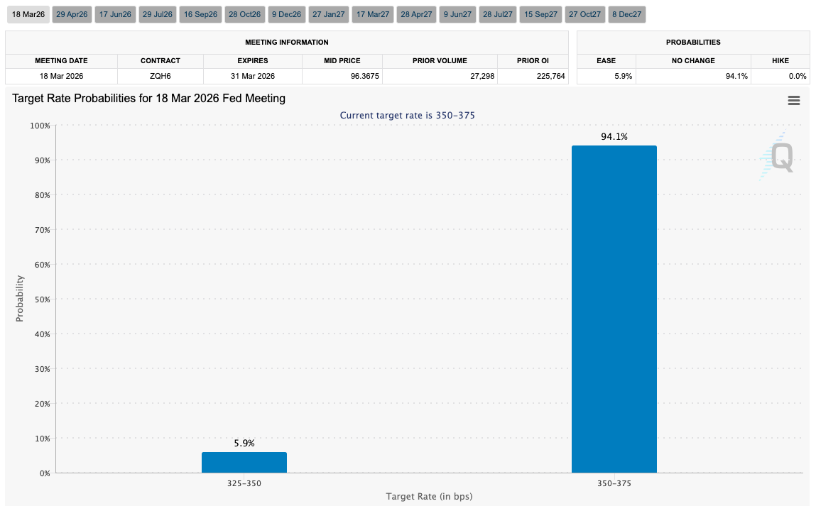The latest data from CME Group’s FedWatch Tool put the odds of a March rate pause at over 90%.