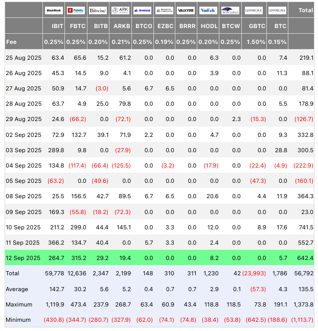 The US spot Bitcoin exchange-traded funds (ETFs) saw net inflows of over $2.3 billion in the five days through Sept. 12, per data from UK investment firm Farside Investors.