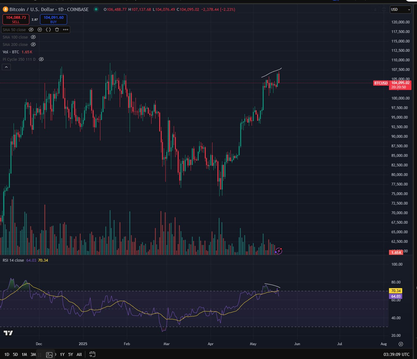 “BTC is now on the clock and probably needs to make a move to $120k-$130k in the coming weeks to make a higher high on the RSI and avoid any weekly bearish divergence from being confirmed.”