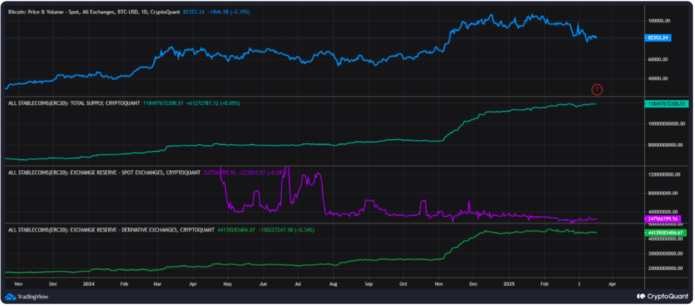 Stablecoin reserves across derivatives exchanges are increasing, he revealed this week, even surpassing spot markets. This, however, is no recipe for price upside.