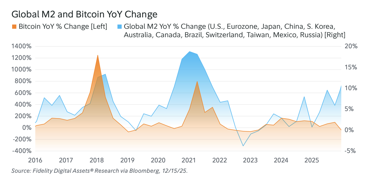 “As a new monetary easing cycle has begun globally and with the Fed’s QT program ending, it is likely that we will see this growth rate continue to the upside throughout 2026, a positive catalyst for Bitcoin’s price.”