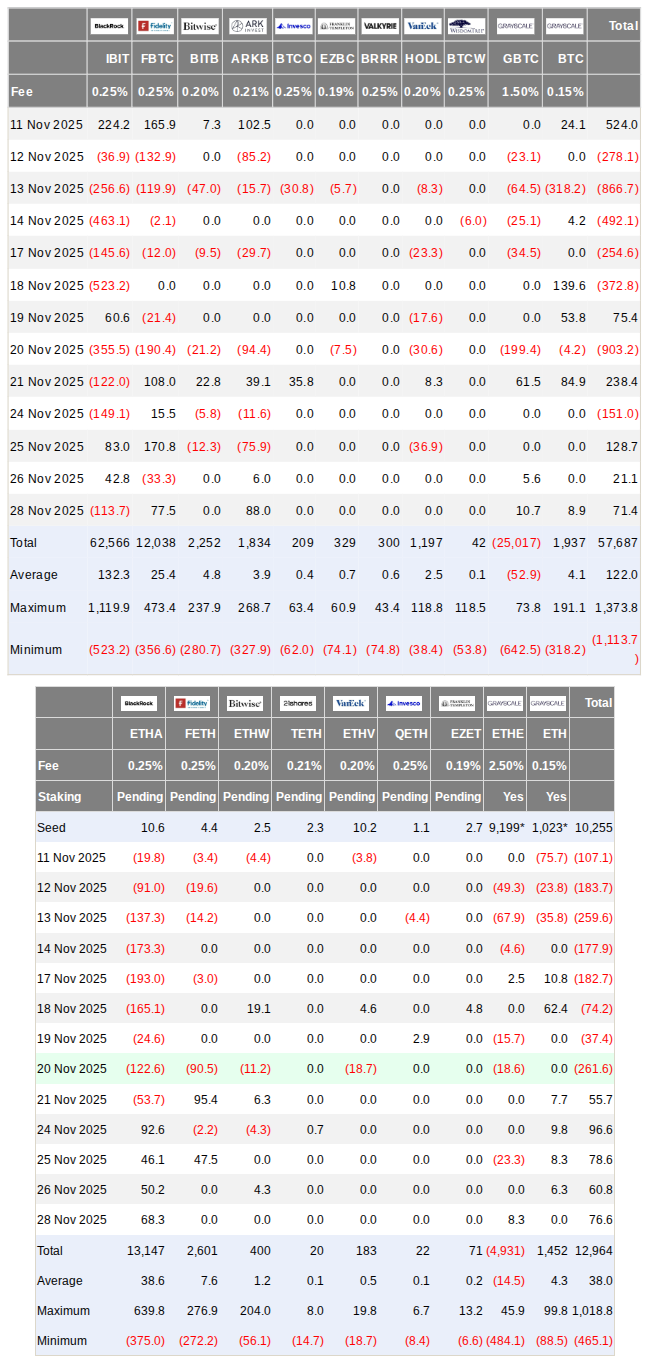 Bitcoin ETFs finished Thanksgiving week with $220 billion in inflows, while the Ether equivalents took in $312 million.