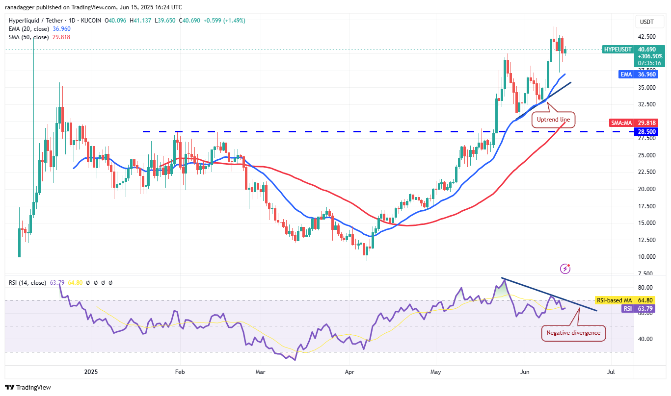 Buyers have been struggling to maintain Hyperliquid (HYPE) above $42.50, indicating that bears are active at higher levels.