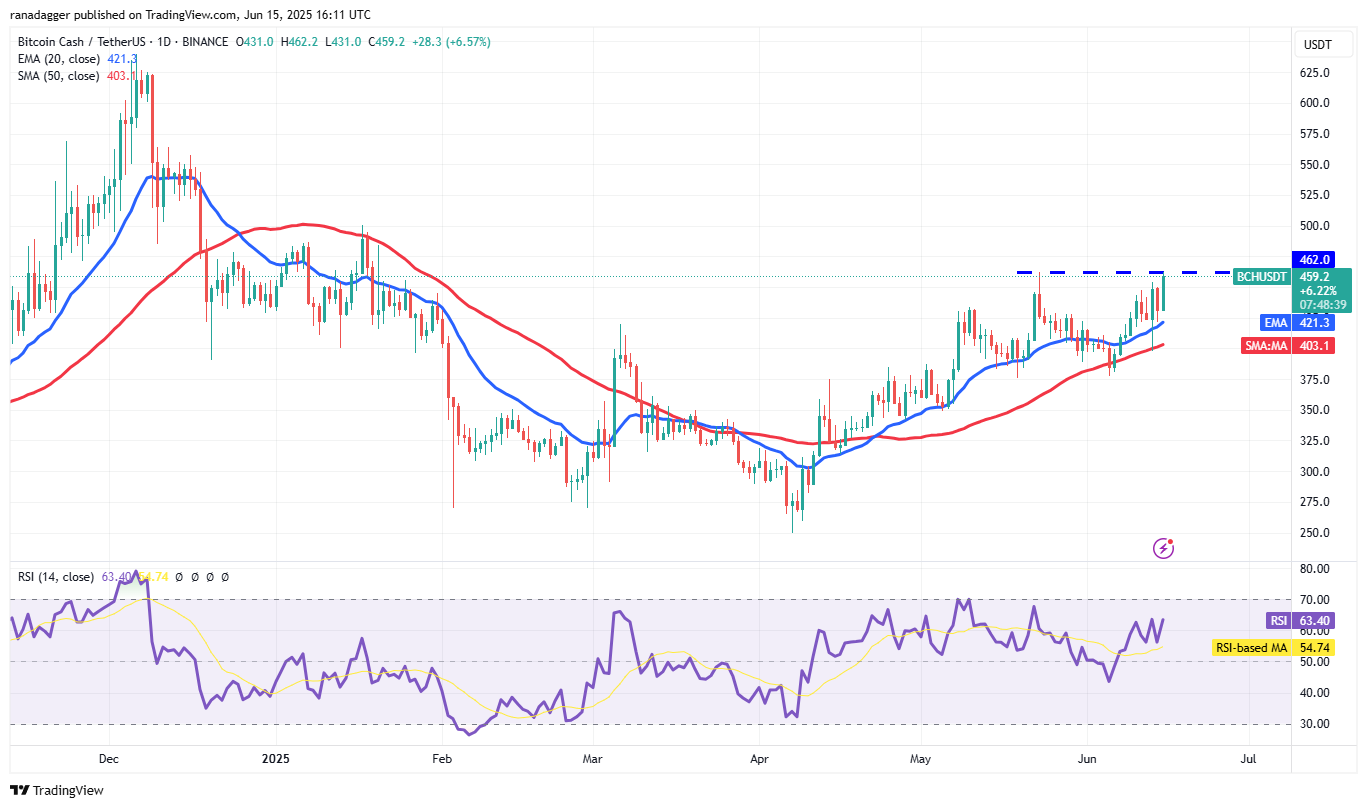 Bitcoin Cash (BCH) bounced off the 50-day SMA ($403) on Friday, but the bulls are facing stiff resistance at $462.