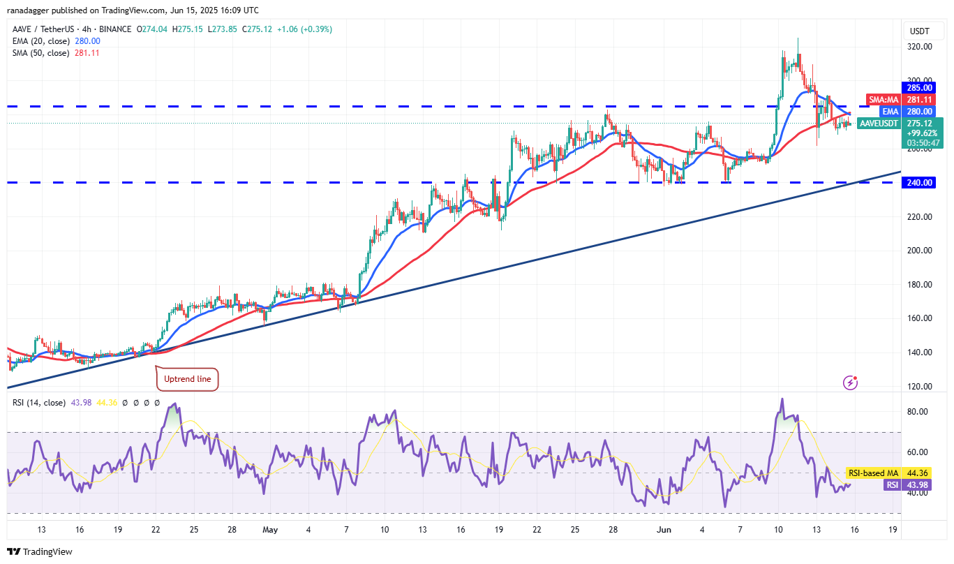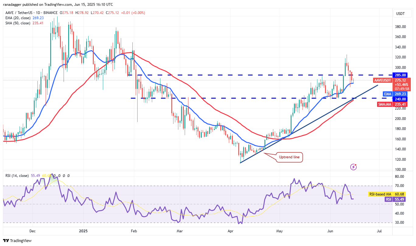 Aave (AAVE) soared above the $285 resistance on Tuesday, but the bulls could not sustain the higher levels.