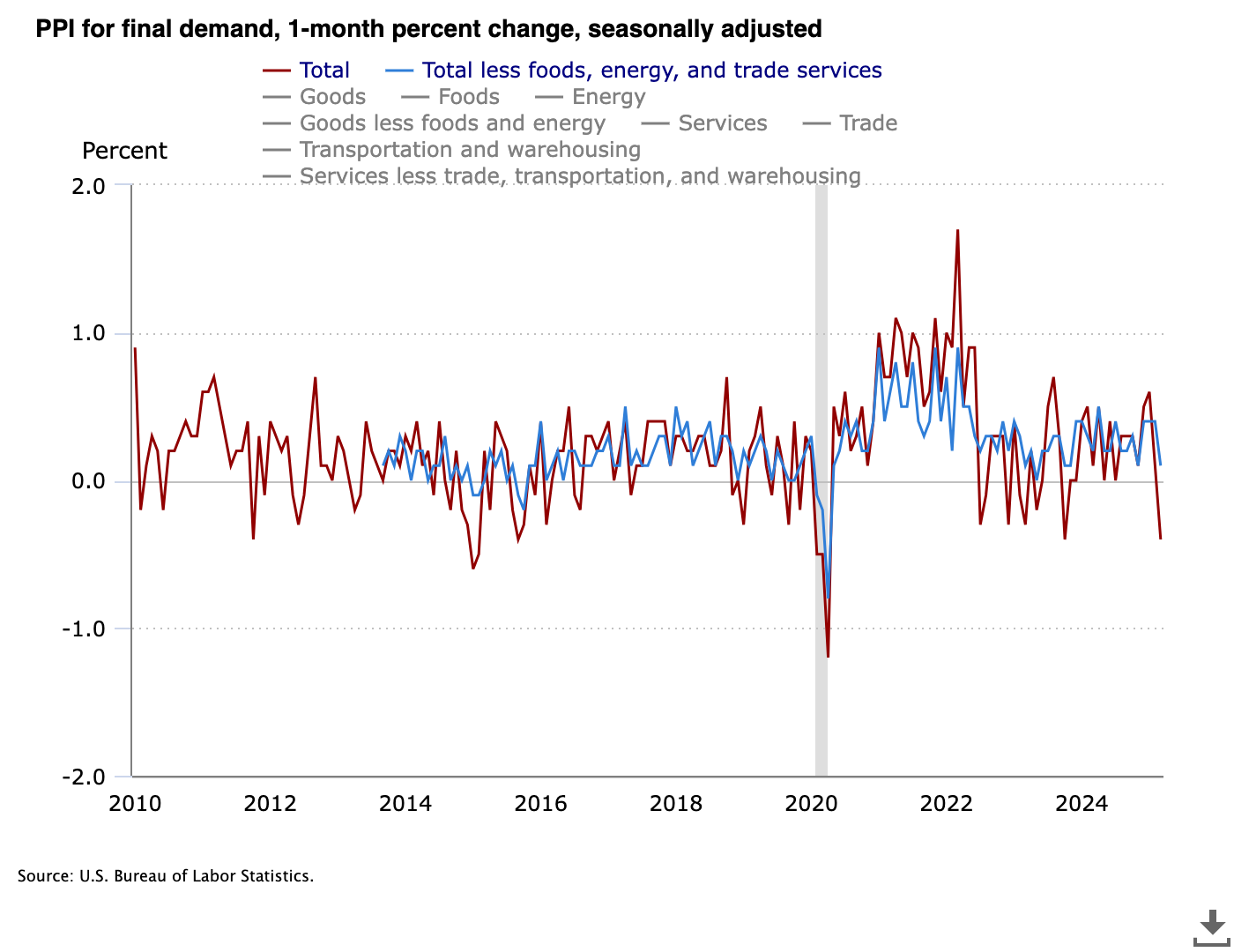US PPI for final demand. Source: BLS