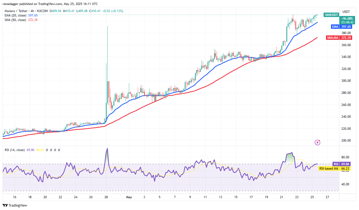 Monero (XMR) soared above the $391 resistance on May 21, indicating that the bulls remain in control.