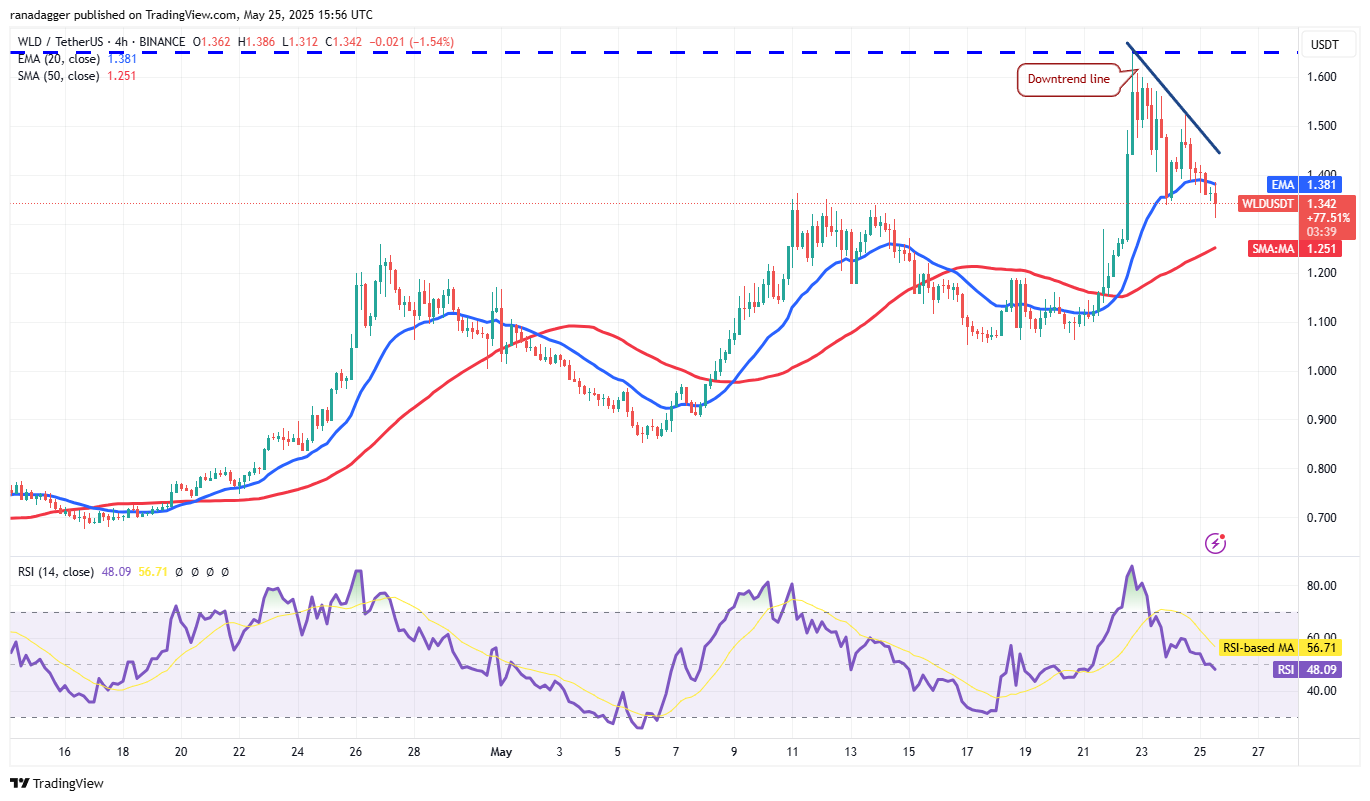 Worldcoin’s (WLD) recovery is facing selling at $1.65, but a minor positive is that the bulls have not allowed the price to dip below the 20-day EMA ($1.20).