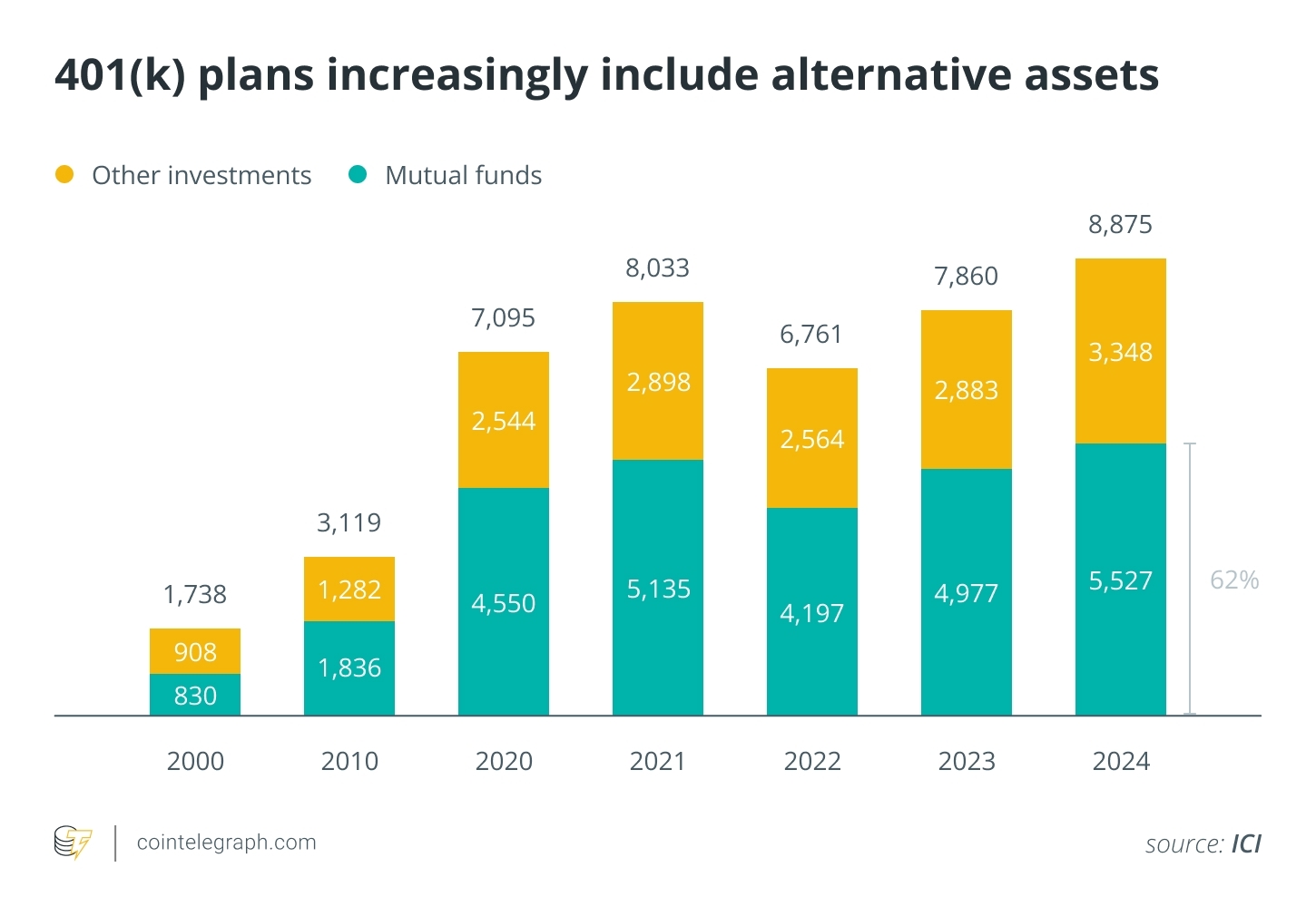 The 401(k) employee-sponsored investment scheme is one of the most popular retirement plans in the US. As of 2024, 401(k) plans held $8.9 trillion in assets. As such, it would represent a huge source of demand for cryptocurrencies and could send prices skyrocketing.