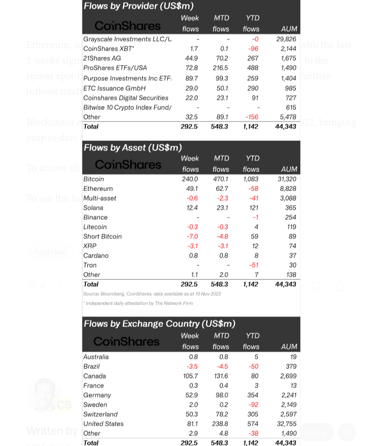 In its latest weekly report on Nov. 13, crypto asset management firm CoinShares furthered the narrative that Bitcoin and altcoins are again attracting capital.