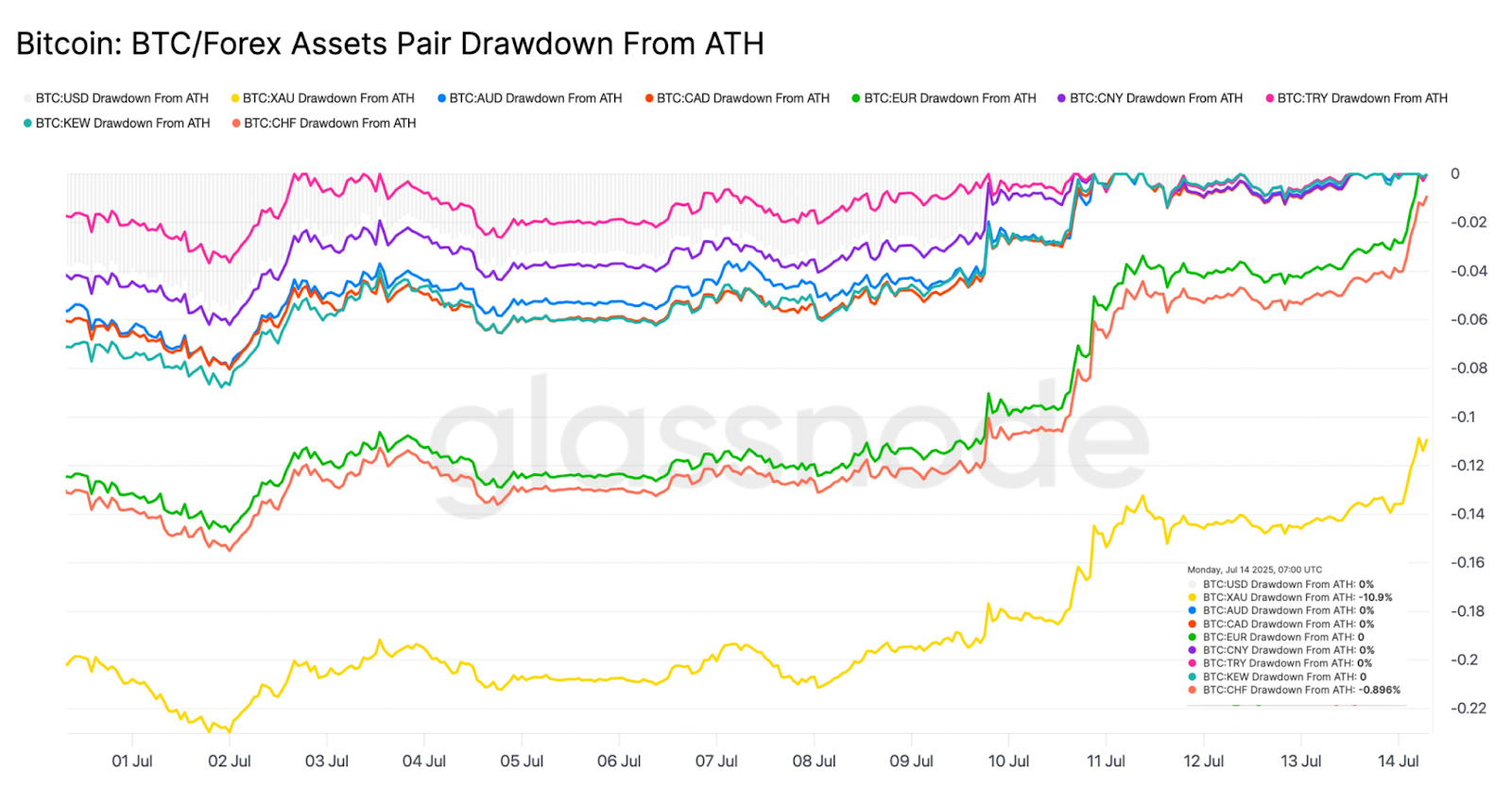 Bitcoin’s performance against major assets. Source: Glassnode
