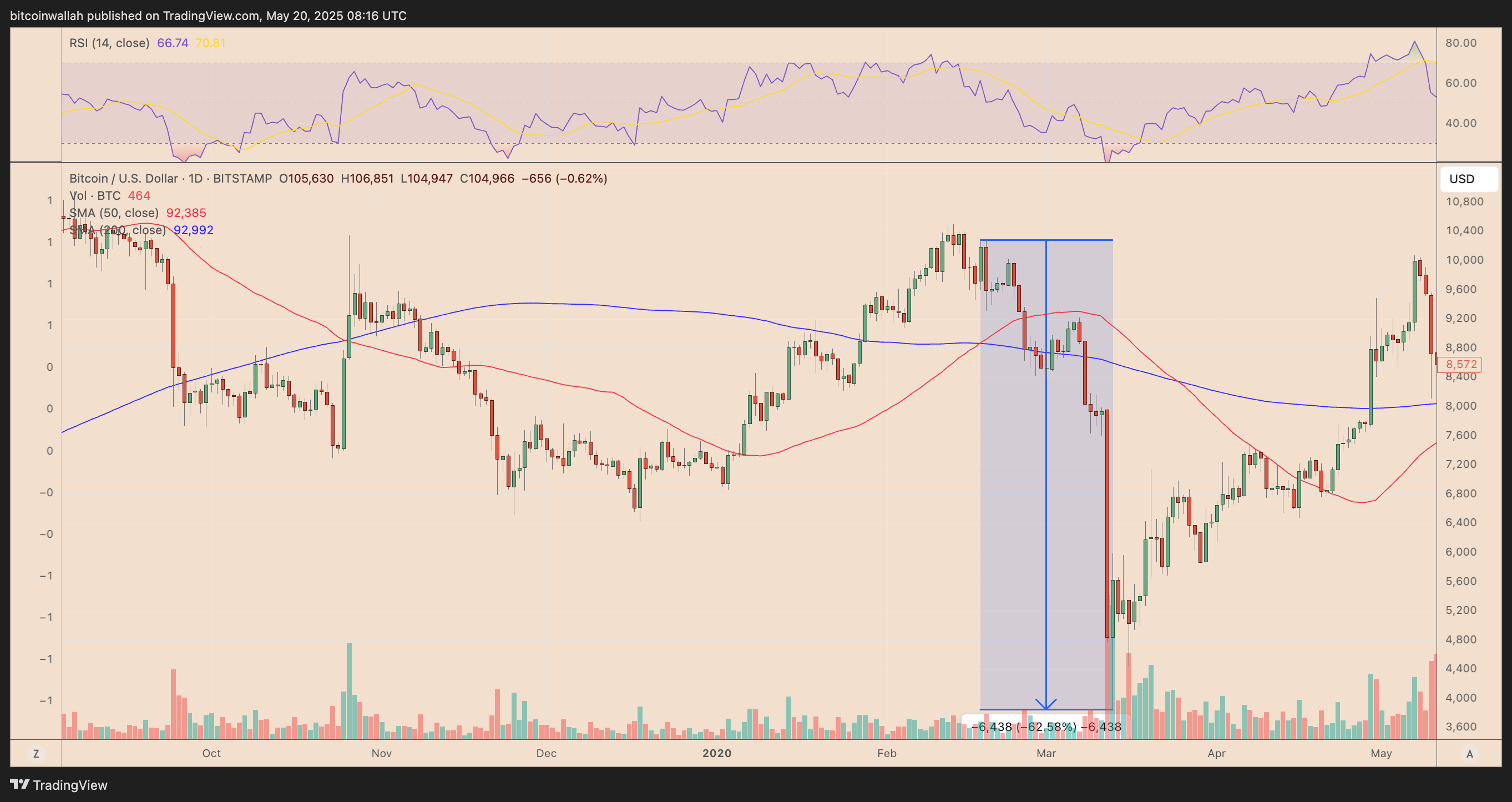 So, instead of an immediate rally after the cross, Bitcoin may initially pull back toward its SMA supports, sitting around the $92,400-95,000 range as of May 20.