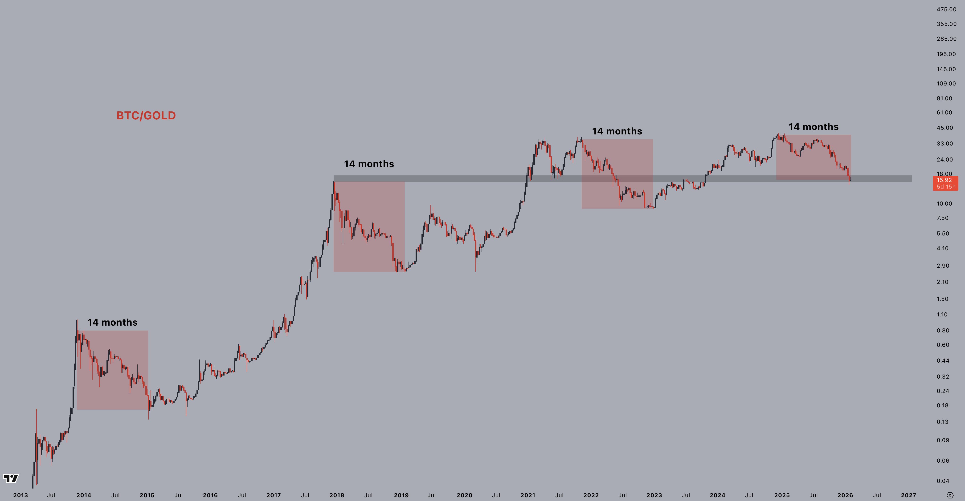 “$BTC and $GOLD historically have taken turns to run, with Gold running the show for the past 14 months or so. It’s usually right around that time that the digital gold narrative takes over,” trader Jelle wrote in one of his latest X posts.