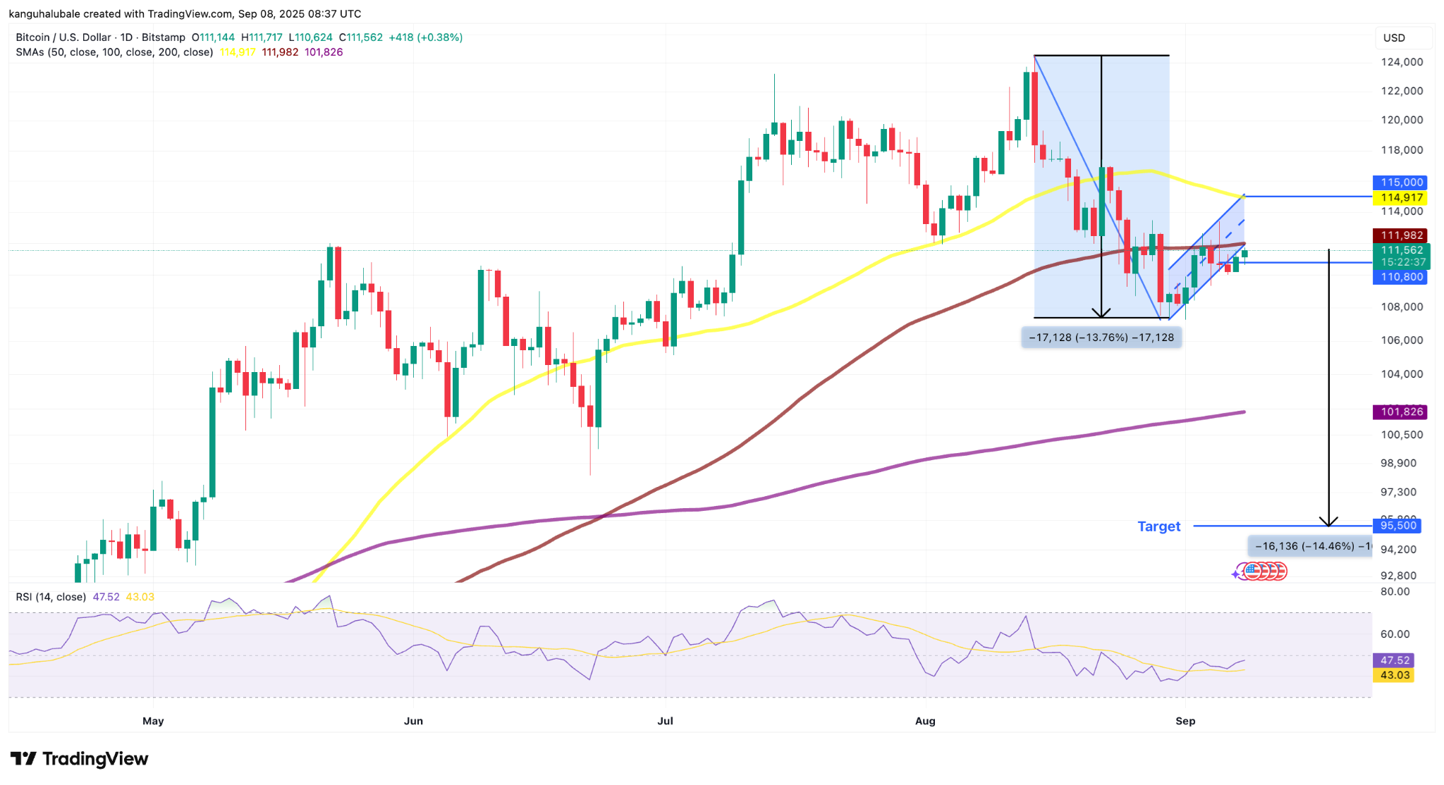 Bitcoin price bear flag targets $95,000