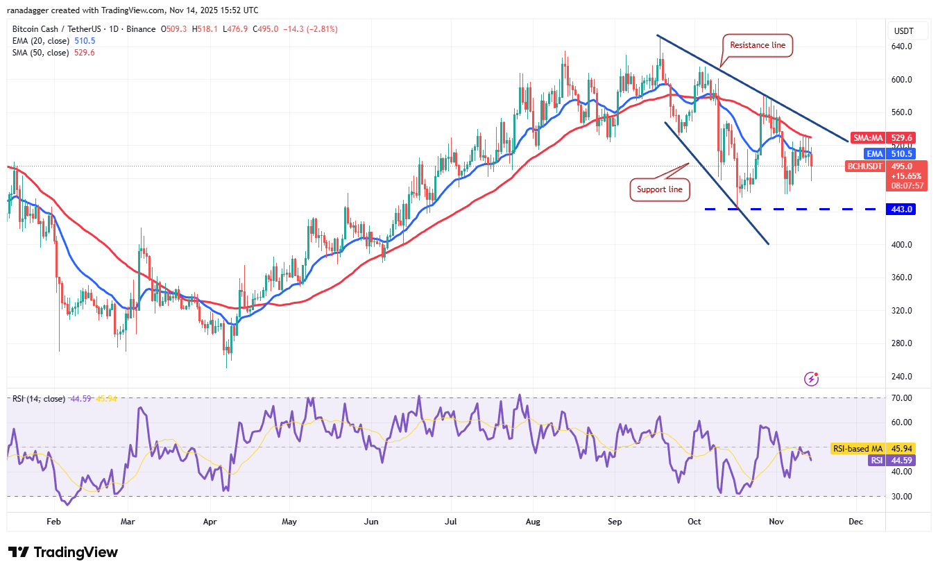 Buyers repeatedly attempted to push Bitcoin Cash (BCH) above the 50-day SMA ($529) in the past few days, but the bears did not budge.