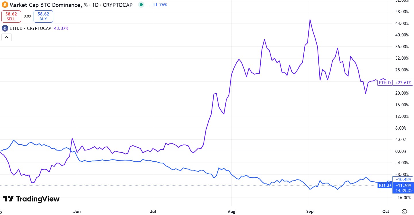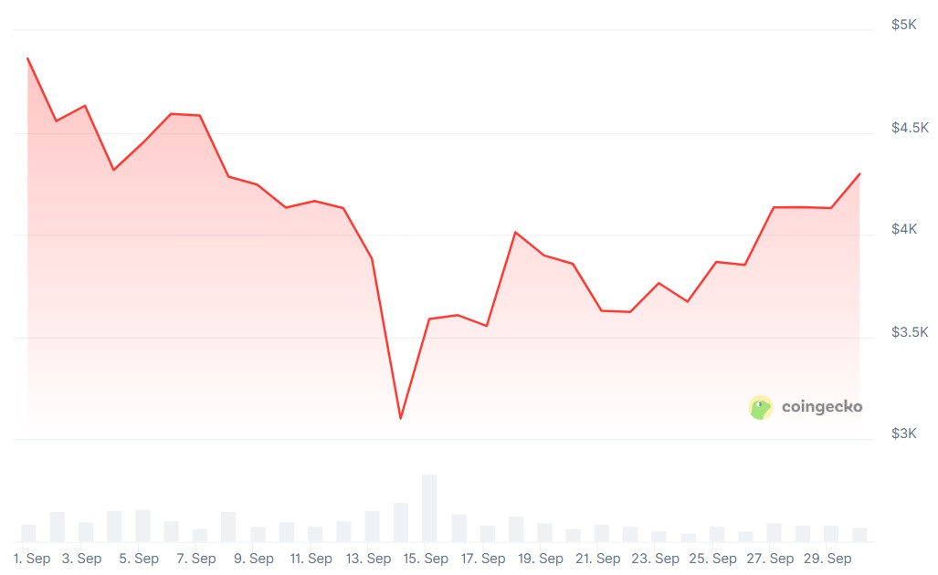 The next three Septembers reflected the pandemic era and its fallout. While COVID-19 initially boosted Bitcoin’s narrative as an inflation hedge, September 2020 saw capital rotate into Ether (ETH) during the “DeFi Summer.”