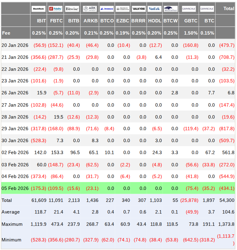 They saw net outflows of $434 million on Thursday, per data from UK-based investment firm Farside Investors.