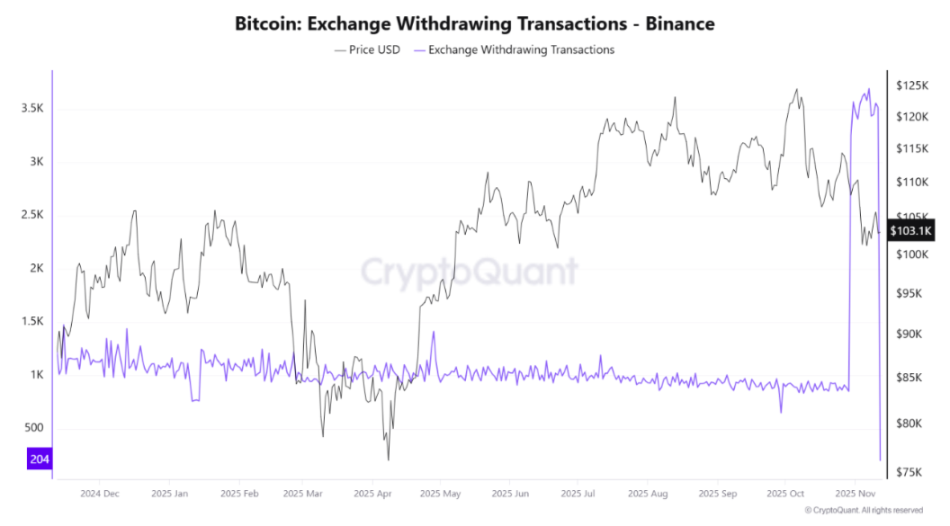 “In early November, Binance recorded a sudden spike in Bitcoin withdrawal transactions — one of the largest surges in 2025,” contributor XWIN Research Japan wrote in one of CryptoQuant’s Quicktake blog posts.