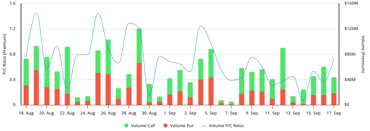 To determine whether the higher Bitcoin options skew coincided with increased trading activity, one should closely examine the premiums effectively paid by market participants. Periods of panic are typically marked by a sharp surge in the put-to-call premium, as traders aggressively seek strategies to hedge their positions.