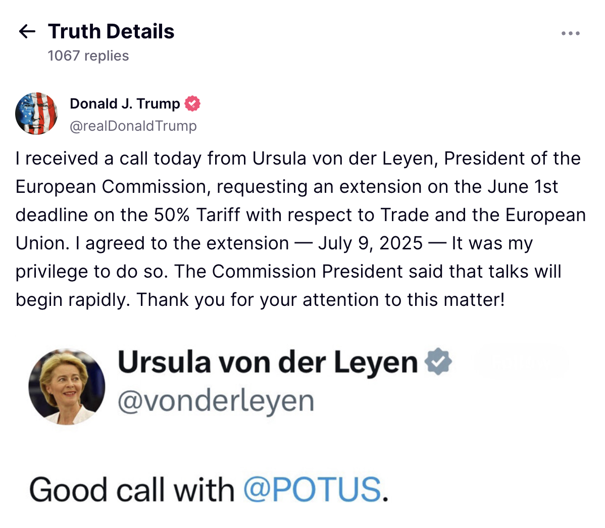 The Sunday (May 25) futures-market driven surge back to $110,000, following US President Donald Trump’s announcement that EU Commision President Ursula von der Leyen had contacted him, suggesting a roughly one-month extension to delay the 50% EU tariffs which were slated to start on June 1.
