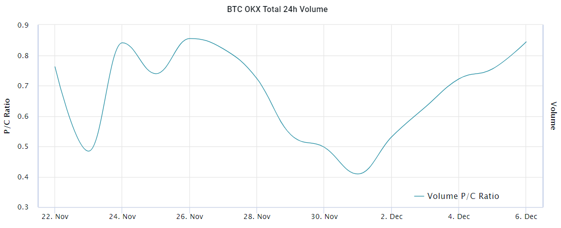 Data from Bitcoin options at OKX reveals an increasing demand for puts relative to calls. This suggests that these whales and market makers might not have anticipated the price rally. Still, traders were not betting on a price decline as the indicator favored the call options in terms of volume. An excess demand for put (sell) options would have moved the metric above 1.0.
