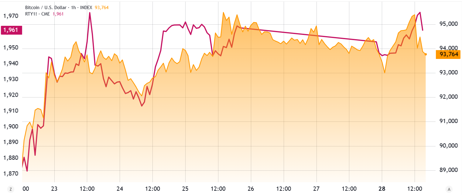 Investors’ optimism increased over the weekend as news that China had quietly reduced tariffs to zero on selected US semiconductor and circuit board imports was reported by Newsweek on April 25. Notably, the US Russell 2000 small-cap index maintained positive momentum on April 28, remaining near its highest level in over three weeks.