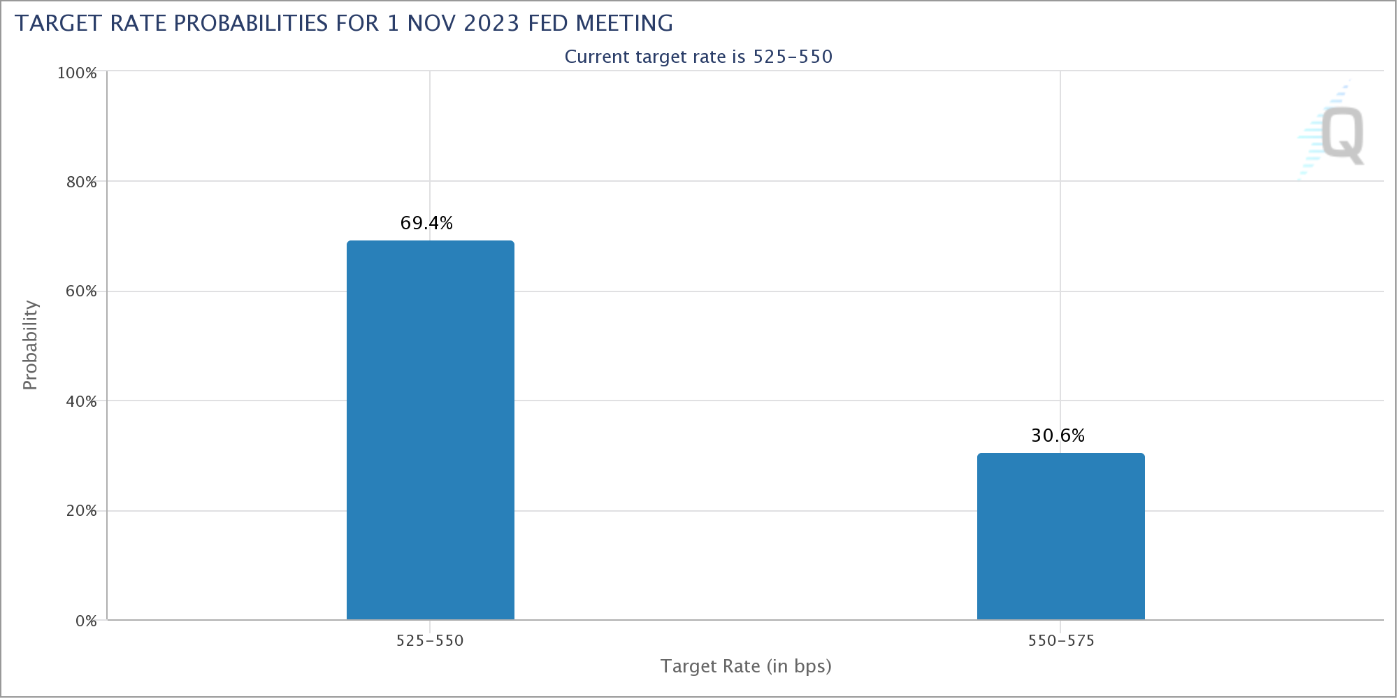 “Slight probability shift on Nov 1 towards a hike but still unlikely,” a further prognosis for Fed action read.