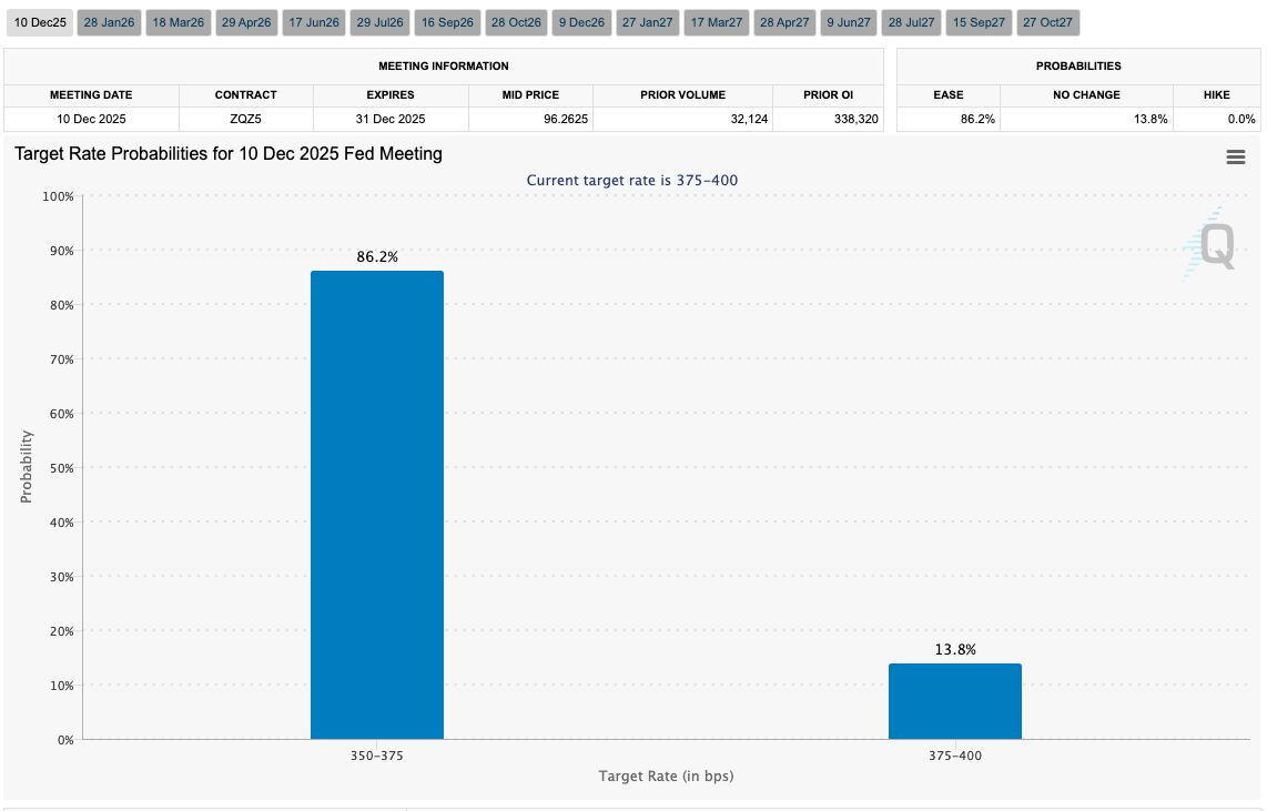 Fed target rate probabilities for Dec. 10 FOMC meeting (screenshot). Source: CME Group