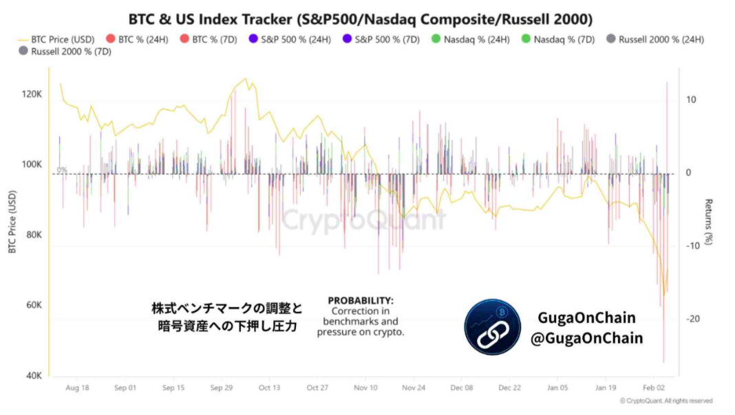“In risk-off phases, BTC tends to correlate with U.S. equities, allowing equity-led de-risking to spill into crypto markets. This pressure does not reflect deterioration in Bitcoin’s on-chain fundamentals, but cross-asset risk management.”