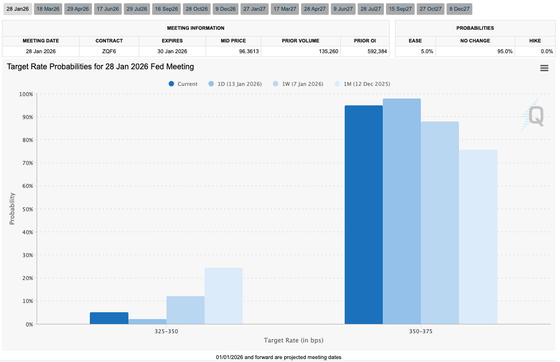 Fed target rate probabilities for Jan. 28 FOMC meeting (screenshot). Source: CME Group FedWatch Tool