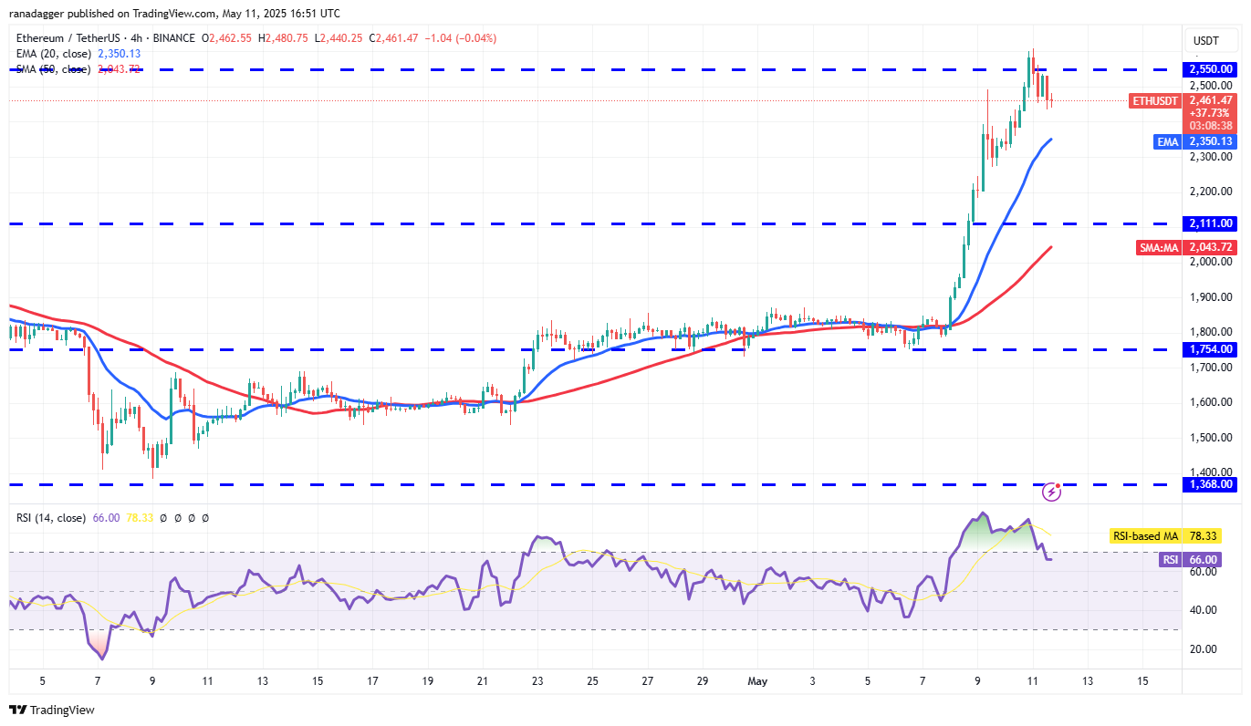 Ether (ETH) skyrocketed from $1,808 on May 8 to $2,600 on May 10, indicating aggressive buying by the bulls.