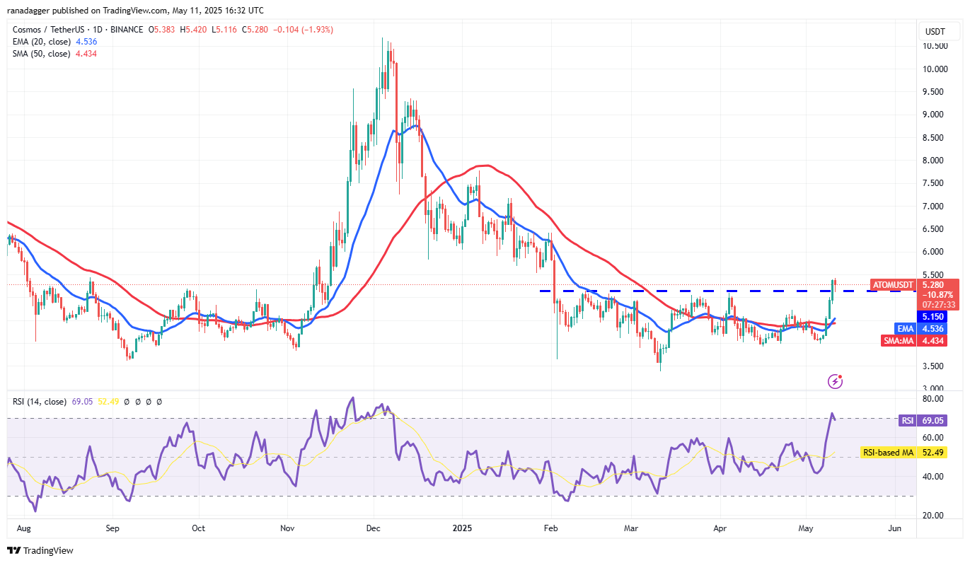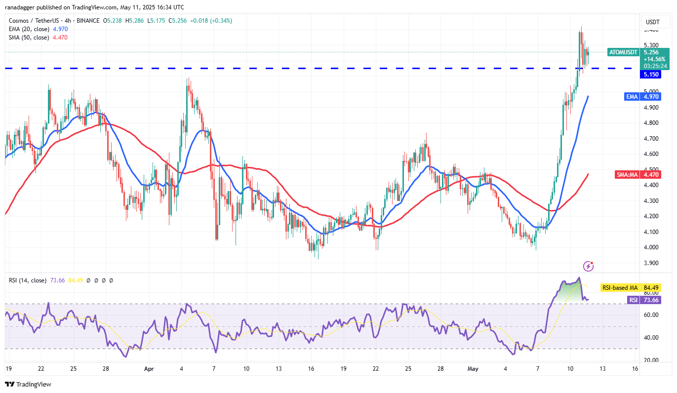Alternatively, if buyers sustain the price above $5.15, the ATOM/USDT pair could pick up momentum and rally to $6.50. Sellers will try to halt the up move at $6.50, but if the bulls prevail, the pair could rally to $7.50.