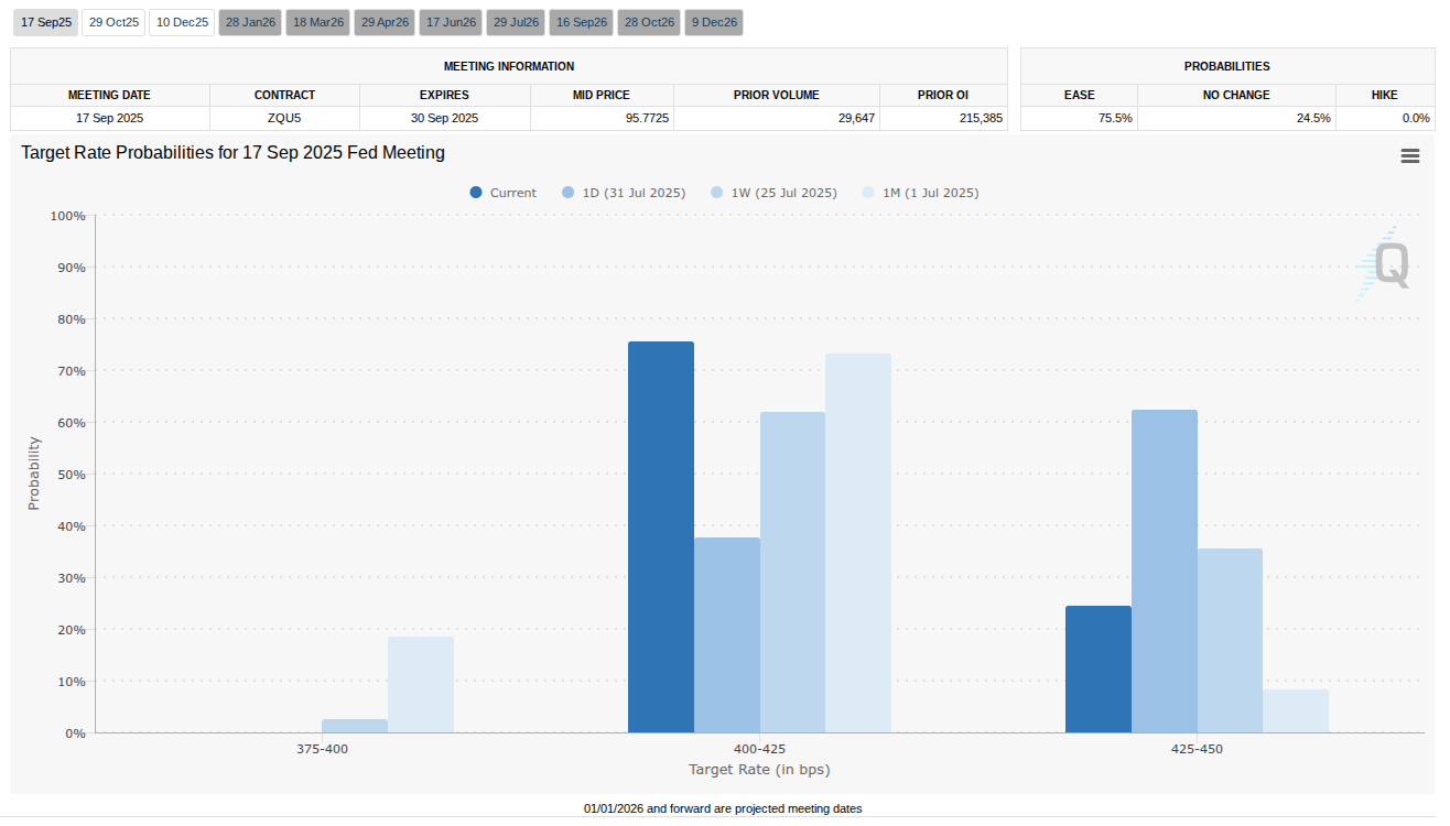 The latest data from CME Group’s FedWatch Tool showed market expectations rotating back to favoring a rate cut at the Fed’s September meeting.
