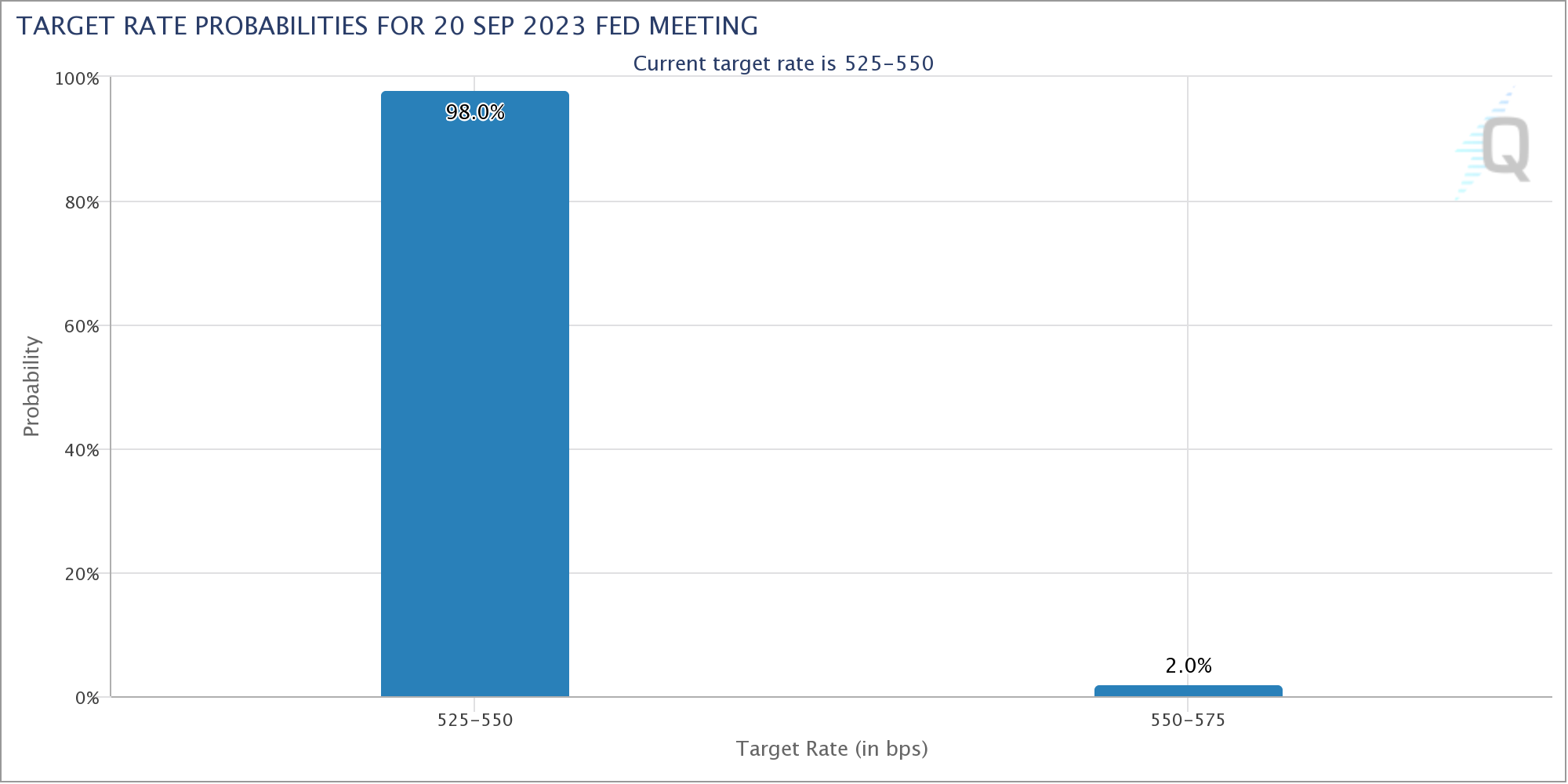 CME Group’s FedWatch Tool put the odds of a surprise scenario at just 2%.