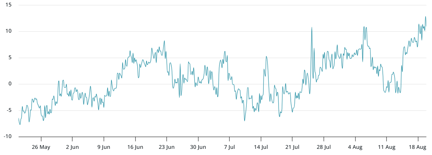 The Bitcoin 30-day options delta skew (put-call) surged to 12%, its highest level in over four months. Under neutral conditions, this indicator typically oscillates between -6% and +6%, reflecting balanced pricing for call (buy) and put (sell) options. Levels above 10% signal extreme fear but are rarely sustained.