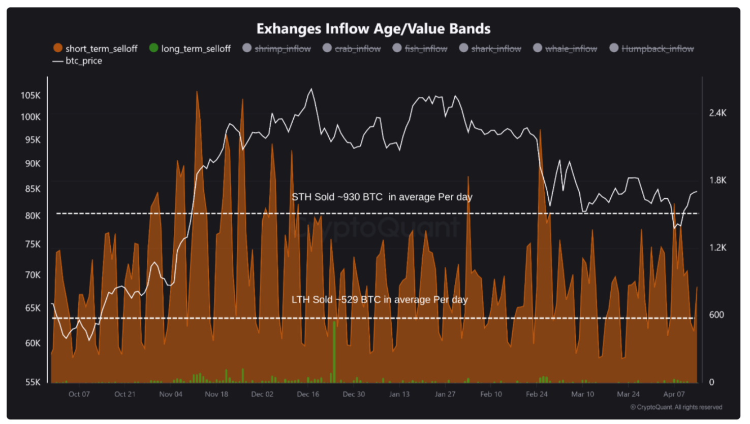 “Short-Term Holders (STH) have been the primary sellers, sending an average of ~930 BTC/day to exchanges,” fellow contributor Crazzyblockk wrote in a separate Quicktake post.